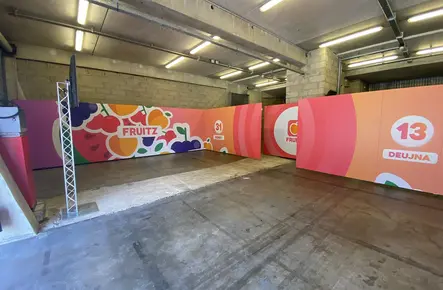 - Produktion und Beklebung der Stellwandelemente nach Vorgabe der Agentur
